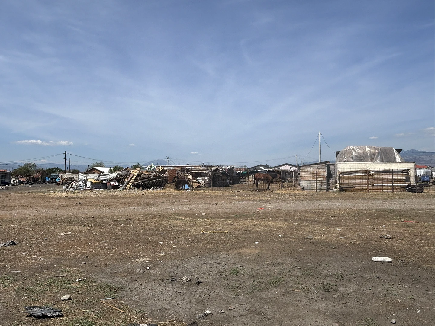 Naselje čine barake i neuslovni objekti bez stambenih zgrada, sa razbacanim otpadom i neposrednom deponijom na kojoj se odlaže životinjski otpad, što predstavlja ozbiljan sanitarni rizik. Voda je dostupna preko vodovoda i redovno se plaća, dok je struja prisutna djelimično, uz česte prekide i dio domaćinstava bez priključka. Sanitarije su uglavnom spoljašnji toaleti, a objekti su oštećeni, vlažni i prokišnjavaju. Posebno su ugrožene porodice sa djecom i domaćinstva bez ličnih dokumenata.